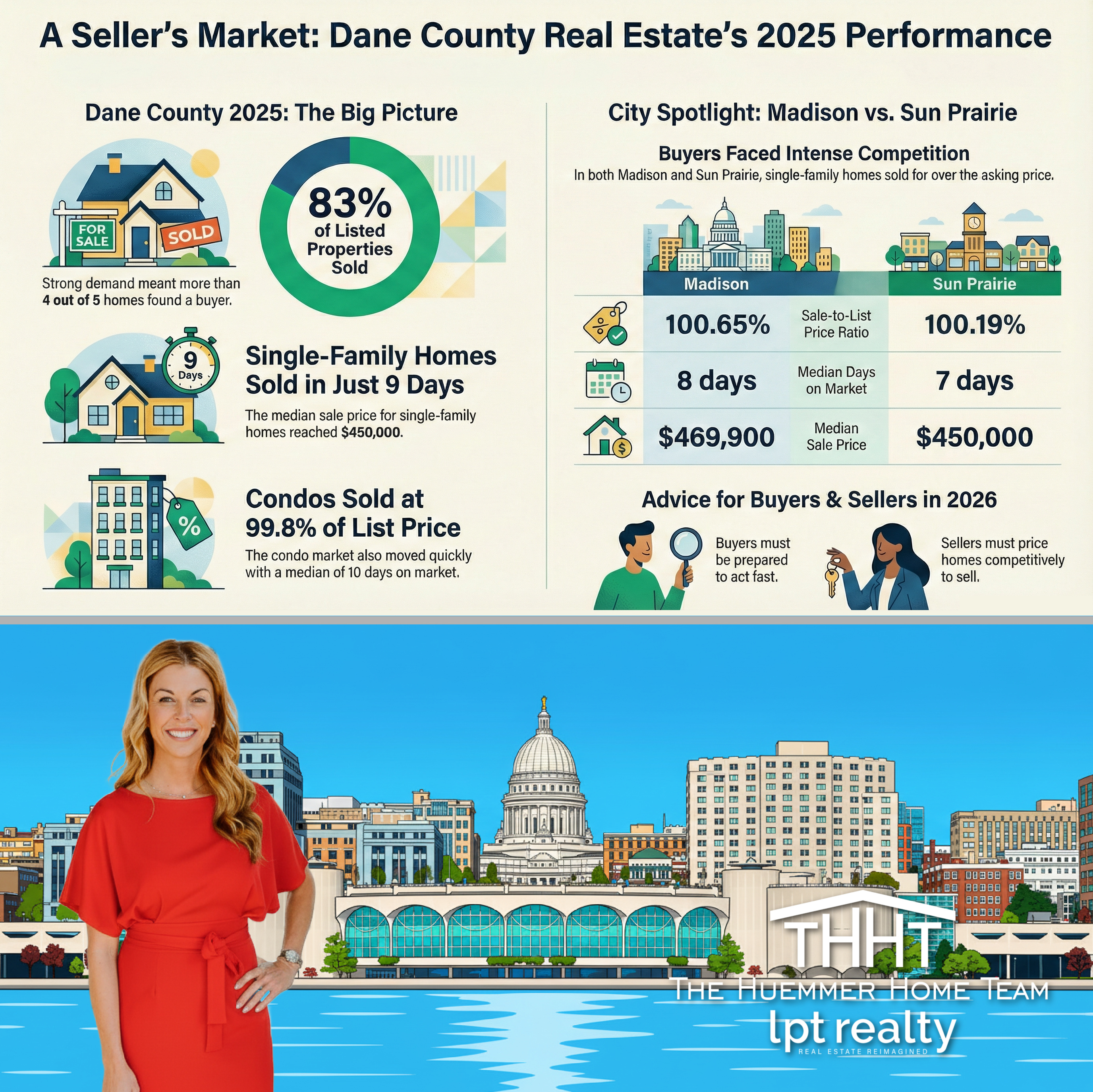 As we close the books on 2025, the Dane County real estate market tells a story of solid activity, strong sales ratios, and a competitive landscape for both buyers and sellers. Here's what homebuyers and sellers need to know about how the market performed this year.